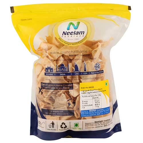 Neelam Foodland Low Fat low Salt Soya Chips made with the best quality ingredients. An ideal appetizing Snack which every age person would love to have at any time. Carry Chips Pouch along with you to enjoy in Breaks Traveling Picnics or Movies. It can be enjoyed plain or with dips Coffees Juice and milkshakes. Spice up your Mood with a variety of snacks from Neelam Foodland. Store in a cool and dry place.