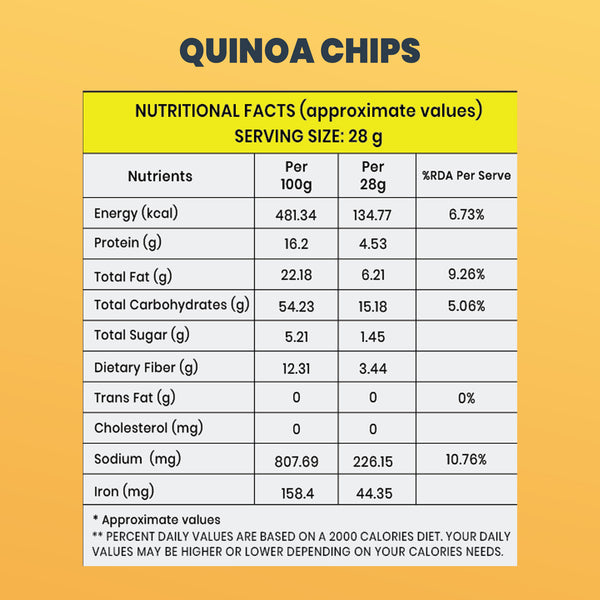 Spice up your snack time with Quinoa Chips Peri Peri light, crispy, and power-packed with protein. Infused with bold peri peri seasoning, they deliver a fiery crunch with every bite! (Net Weight: 36 gms)