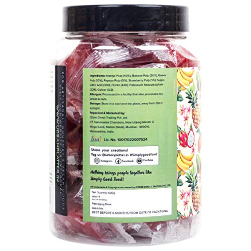 Mango pulp Banana pulp Guava pulp papaya pulp strawberry pulp Sugar citric acid pectin potassium metabisulfate color