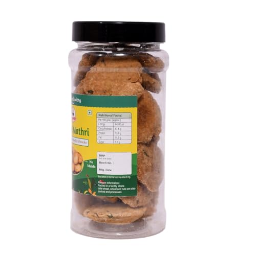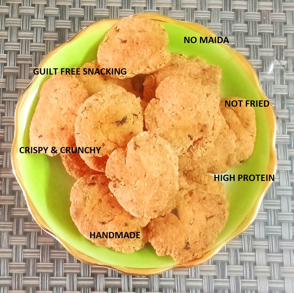 The mathri is made by kneading the dough with whole wheat flour ghee (clarified butter) salt and a mixture of spices such as cumin seeds carom seeds turmeric powder and crushed black pepper. The dough is then rolled out into small disks or rounds and baked to perfection. Baked Wheat Mathri is a savory Indian snack that is popularly enjoyed with tea or coffee. It is a crispy and crunchy treat made from whole wheat flour and a blend of spices.