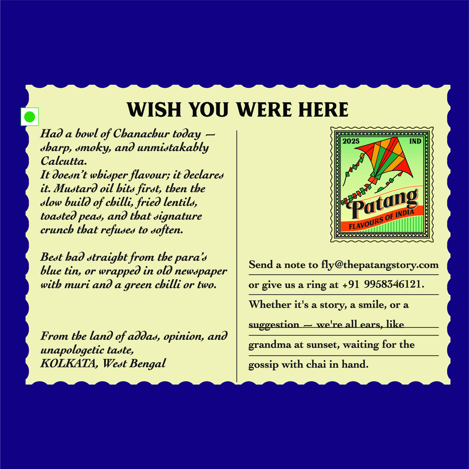 Calcutta has a way of blending warmth and mischief, and this chanachur carries both. A crisp mix of lentils, sev, nuts, and spice, it tastes like College Street arguments, tram-side sunsets, and sweet-shop laughter that refuses to fade.