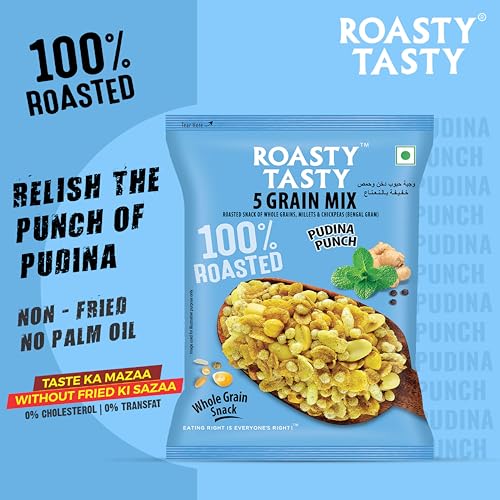 HomeGrocerySnacksHealthy SnacksRoasty Tasty 5 Grain Mix Roasted Snack of Whole Grain & Millets with Pudina Punch Roasted Namkeen Snacks 200g | Healthy Snacks for All | No Trans Fat | Export Quality | Great Diet Snack for weight loss