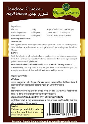 Nawab's Secret Tandoori Masala comprises of some of the most exotic spices for which Lucknow is famous.This low-fat dish is packed full of flavor. It's quick to cook and the marinade does all the work. Most importantly with Nawab's Secret Spices and recipe . the Tandoori chicken will be tender moist and juicy .