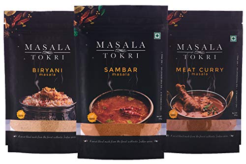 Masala Tokri Biryani Masalais a luscious blend of exquisite spices. A secret-mix we've mastered over generations of the family recipe this masala will let you savor the taste of a rick nawabi kitchen biryani and tingle your taste buds with lots of excitement. Use this masala to add a rich taste to your biryani. It makes the best-tasting biryani and your kitchen will have its beautiful aroma as biryani is cooking.The the fragrant aroma of intense spices tender meat flavored rice & caramelized onions gains even more complexity as it is slow-cooked over a low flame (Dum Pukht). But all these efforts translate into a meaningful experience only when premium spices are used in the Biryani Masala. Masala Tokri Sambhar Masala Prepared the handcrafted south- way to lend an authentic spice & flavor this sambar masala powder is a flavourful mix of lentils whole spices and aromatic herbs that have to be added while preparing the sambar. It's truly a flavor-enhancing addictive blend. There is nothing more satisfying than a plate of puffy hot idlis or piping hot dosa with a bowl full of spicy sambar. This lip-smacking dish preparation is made in most south-Indian homes and is everyday breakfast food. The sour spicy and soothing refreshing flavors of sambar are possible only with homemade masalas or Masala Tokri Sambar Masala.Masala Tokri Meat Curry Masala We are particularly proud of our meat curry mix. Its an all-purpose meat curry masala that goes well with Chicken Mutton and Pork curry. Masala Tokri meat curry masala is a secret blend of traditional spices inspired by regional flavors across India. We take our curries very seriously hence have developed this secret mix to elevate your Sunday lunch experience with perfection. All these revered recipes taste delicious & rich-flavored only if they are made from Masala Tokri Meat Masala