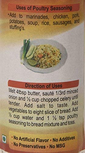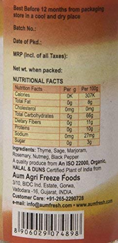Poultry Seasoning - 100% Pure & Natural 15 gm No artificial flavour & -when compared with sun dried or freeze dried our products are found to yield all the qualities like color, flavor, aroma, taste, rehydration ,nutritional values and increased shelf life property to an unmatchable extent taking it very close to the fresh ones and makes our technology the best drying technology of the present era. is committed to supply quality products. We work with thousands of small family farmers in India to cultivate thousands of acres of sustainable organic farm land. By choosing products you are not only getting pure solid matter but also spiritual vibrations imbibed nanoscopically during processing. proves itself to be your right choice.