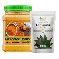 Bliss of Earth 500GM Organic Lakadong Turmeric Powder High Curcumin & 50GM Tej Patta Bay Leaves A1 Grade Zero Pin Holes & Zero Dust With Uniform Green Color