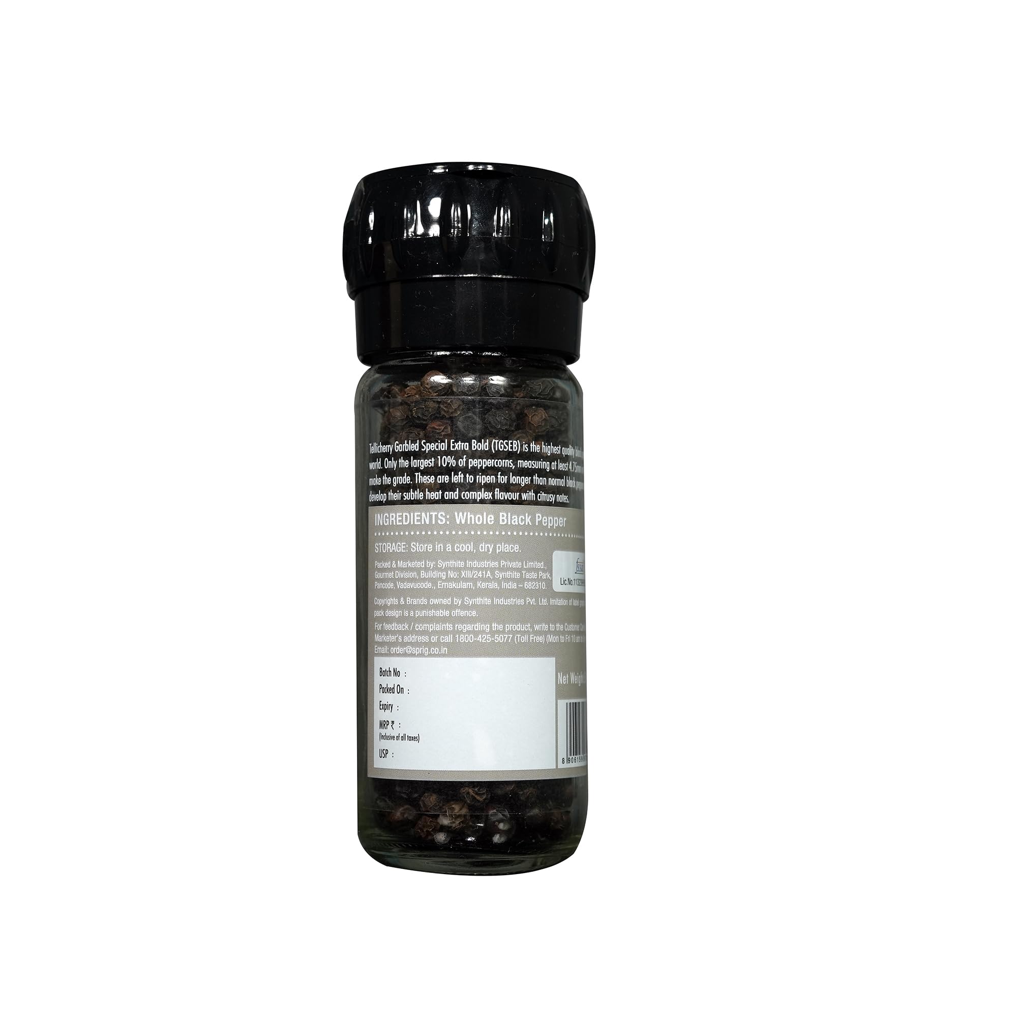 PURE BLACK PEPPER: Sprig Finest Black Peppercorns are Tellicherry Garbled Black Peppers sourced from the Malabar Coast of India.