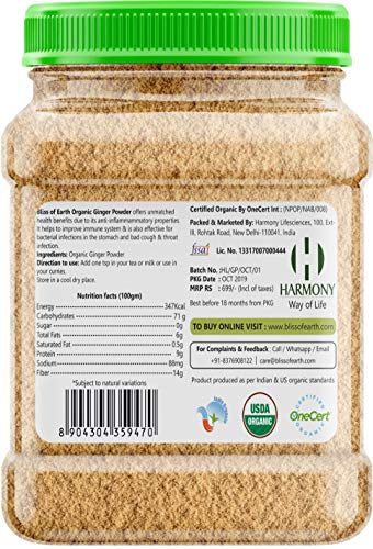 • ORGANIC NON-GMO GLUTEN FREE: Bliss of Earth ginger powder is dehydrated at a low temperature that makes the powder fresh keeping its nutrients intact. Its completely gluten-free and non-GMO.