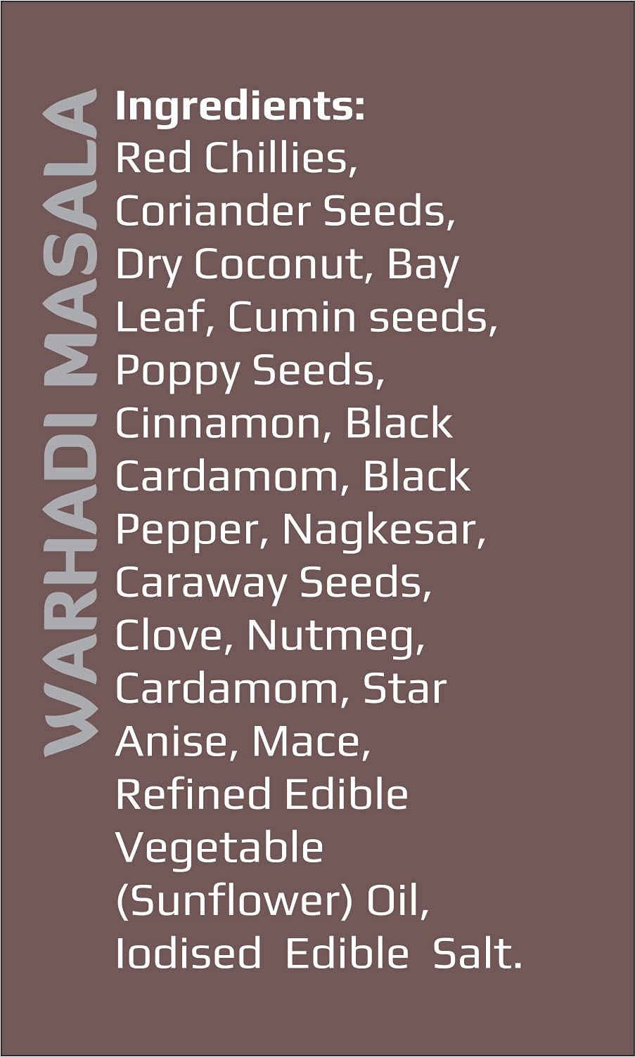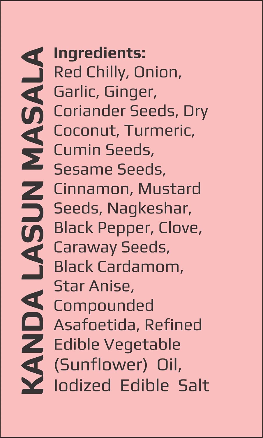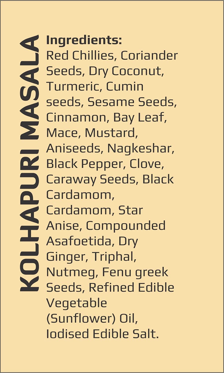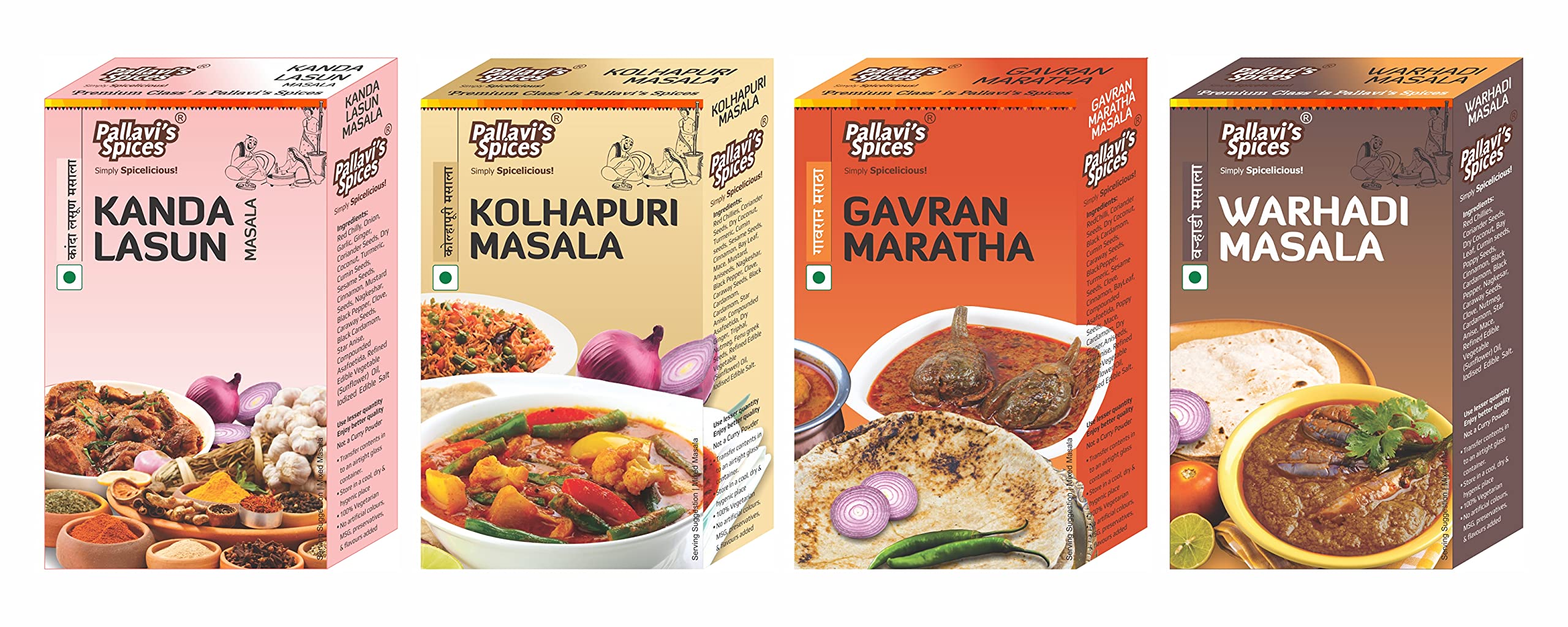 List of Included Items: 1 Spices Kanda Lasun Masala 1 Kolhapuri Masala 1 Gavran Maratha Masala and1 Warhadi Masala (50 g each)