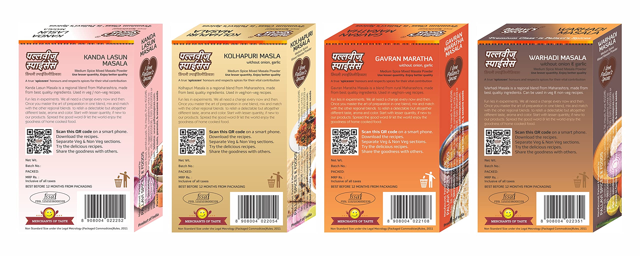 1 Spices Kanda Lasun Masala 1 Kolhapuri Masala 1 Gavran Maratha Masala and1 Warhadi Masala
