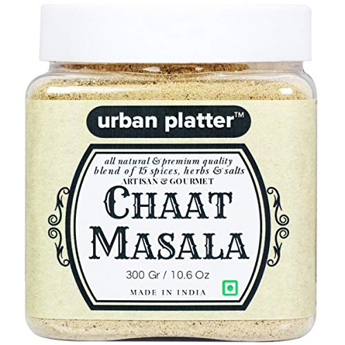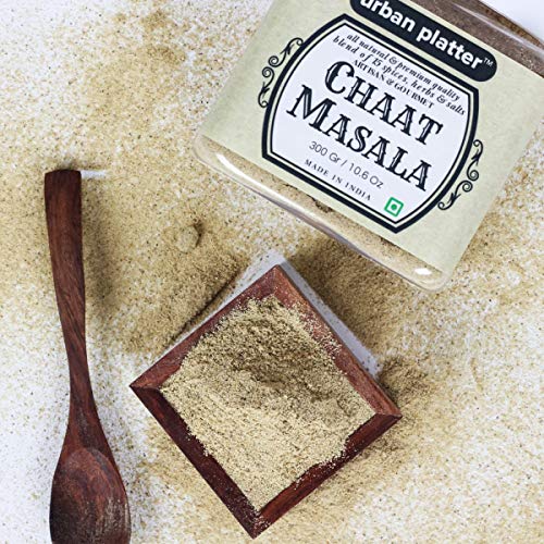 chaat masala 300g [all natural and blend of 15 spices herbs and salts] chaat masala literally means 'tangy spice'. It is tangy blend of 15 spices herbs and salts. Contains amchoor iodized salt black salt pomegranate seed powder cumin ginger black pepper coriander seeds chilly ajwain kachini nutmeg cloves hing and mint leaf powder. This savoury spice blend is frequently used in indian cuisine as a finishing sprinkle over chaats parathas salads raitas fruits and even some beverages. Made of everyday spices combined smartly with pungent ingredients like black salt and amchur powder. Our chaat masala has a strong aroma which draws one to any dish it is ed to. Not only is this a great flavour enhancer this is an excellent and appetite ing blend. - simply good food