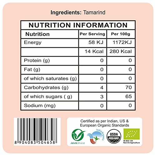Product Description Tamarind (Tamarindus indica Fabaceae) is a tropical fruit. The ripe tamarind fruit pulp is of commercial importance. It has innumerable uses in food preparation. Tamarind pulp has a sweet acidic taste because of the combination of high content of tartaric acid and reducing sugars. Tamarind organic is also used for medicinal purposes in Ayurveda. In traditional medicine it is used as a laxative because of its high malic acid tartaric acid and potassium content. Tamarind organic is good for reducing digestive disorders. 24 Mantra Organic Tamarind organic can be incorporated into a daily diet to avail all these benefits From the Manufacturer Treat your taste buds with tangy tamarind premium by 24 mantra organic. Tamarind is a piquant pod-like fruit of tamarind tree which has extensive use in cuisines all across the world. Tamarind has a peculiar sweet and sour flavour which is used in savoury dishes and in pickles. It is used to make jams blended into drinks sorbet and ice creams. Imli ki chutney is a popular dish made from 24 mantra's organic tamarind premium. Imli chutney has a distinctive tangy flavour and is a best companion with pakoras bhel and sev puri. Ayurveda uses tamarind for curing gastritis and digestion problem. In some countries tamarind is sweetened with sugar coating and eaten as a sweet sour candy. If you are opting for a healthy lifestyle go organic. All products of 24 mantra are organic certified.What is Organic?Organic is a way a habit and a practice all rolled into one. It refers to a way of growing and processing food. It is also about the reliance on an ecological system that sustains itself on rich soil and proven traditional practices to grow crop and food that resists pests and diseases. Organic also means the farmers don't use toxic persistent pesticides fertilizers which are known to contaminate soil air water and the food. In fact organic farmers and farming involves practices of rotating crops deploying beneficial insects using locally honed methods adding composted manure and plant wastes to the soil.They choose solutions to the pests and disease problems that affect their crops in a way that does not damage and destroy the planet. Their wisdom is proven so are their practicesKey benefits No pesticides or harmful chemicalsBetter nutrition rich in antioxidantsBetter tasteBetter ecologySustainable -better planet for our childrenSafe foodNo water contaminationFarmers better lives10 reasons to go organic 1. Protect children and your family members from cancer causing pesticides 2. Say goodbye to chemicals in your diet 3. Get the taste of health and nutrition 4. Reduce health risks with Organic purity 5. Eat foods adhering to international standards 6. Protect the earth as organic farming is planet friendly 7. Prevent water contamination as there are no chemicals pollutants in organic farming 8. Gain from the diversity of crops which is becoming a thing of the past 9. Help small farmers and eliminate middlemen to create sustainable livelihoods 10. Stay in harmony with natureOur StandardsUS EU and India certified us. Organic certification is a process that helps producers of organic food and other organic agricultural products to get their products certified through internationally accredited certification bodies such as Control Union Onecert IMO Indocert etc. Organic certification is intended to assure quality and prevent fraud. Certified organic label is a product assurance for consumers worldwide.The standards are laid down and administered in India by APEDA. The standard is called the NPOP National Programme for Organic Production. Similarly the US standard is called USDA NOP (National Organic Programme) standards and the European Union standards are specified by regulation EC 834/2007Our FarmersThey come with different sizes of land. They belong to different States of India. They enjoy a reputation of being empathetic to nature and the planet. They care about growing healthy pure food. Organic farming begins with good well meaning farmers. They are at the core of our journey. For us it means partnering with them in a way that benefits them and sustains their lands and longevity. We have 20000 farmers working on 30 farming projects spread over 100000 acres in 15 States in India.
