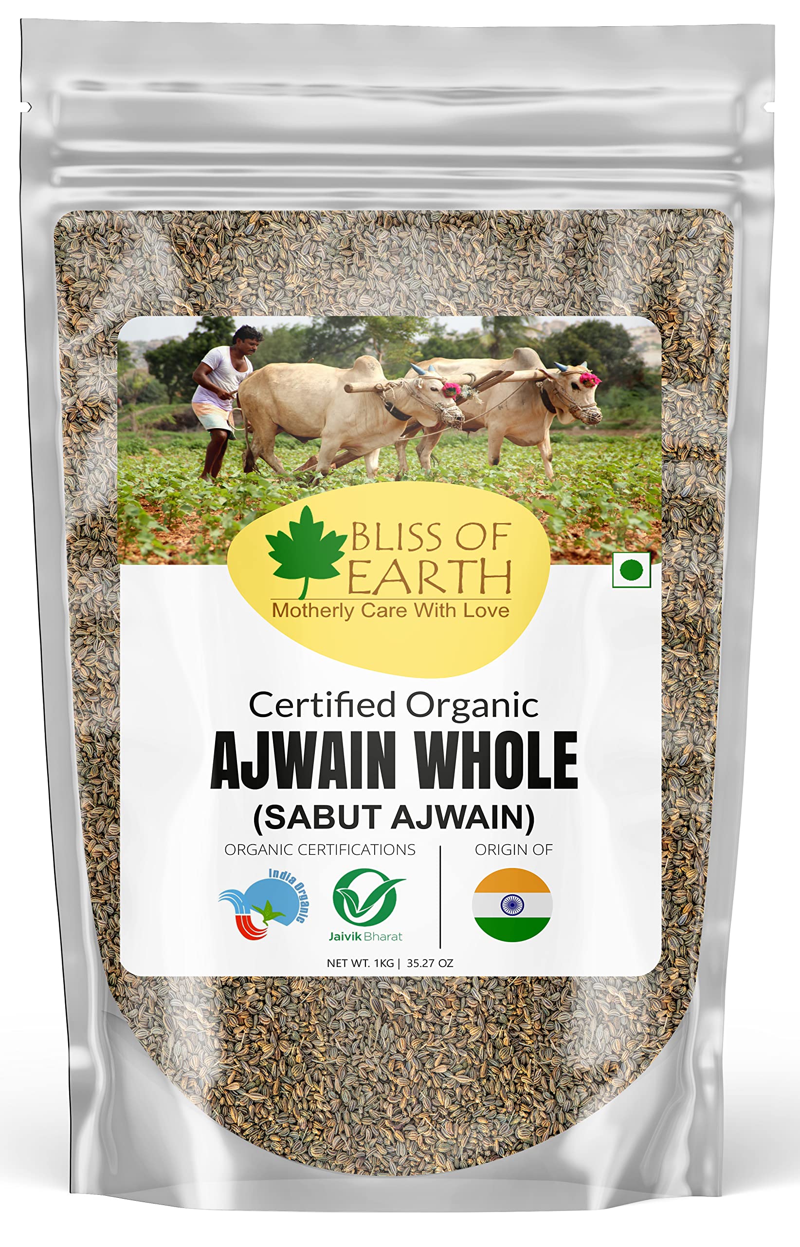 Bliss of Earth Certified Organic Ajwain/Carom Seeds Indian Spices & Masala For Better Hair, Skin,Health & Cooking (1kg)