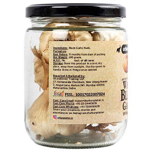 Whole and Fermented Black Garlic 100g / 4.4oz [Nutrient Rich Antioxidant Premium Quality]Black garlic is sweet meets savory a perfect mix of molasses-like richness and tangy garlic undertones. It has a tender almost jelly-like texture with a melt-in-your-mouth consistency similar to a soft dried fruit. Hard to believe but true. Itâ€s as delicious as it is unique.In Taoism mythology black garlic was rumored to grant immortality. We canâ€t promise you that but thereâ€s no doubt that black garlic is great for your health—itâ€s loaded with nearly twice as many antias raw garlic.Garlic has been used as a since antiquity in virtually every civilization including ancient Egypt India Rome China Korea and Japan.Black garlic can be consumed raw and used in cooking applications such as roasting sautÃing and baking. It is an ideal ingredient for making rich and complex purees dressings rubs marinades and sauces. Black garlic can be roasted and spread on bread as a sweet topg.