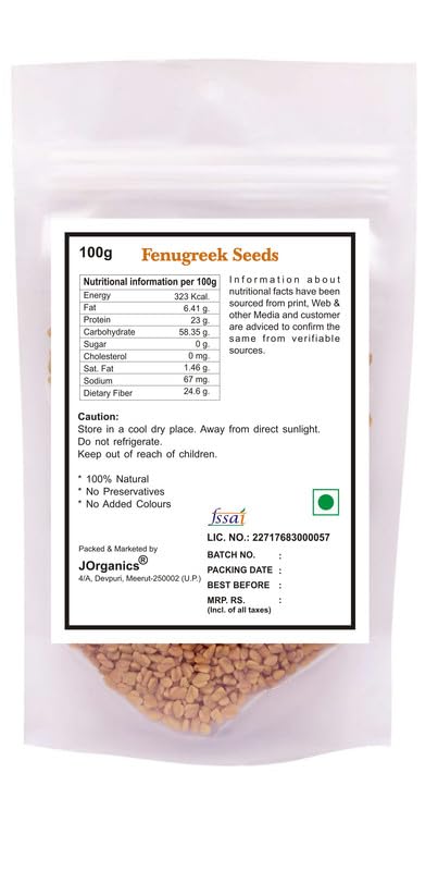JOrganics Fenugreek Seed Powder (Methi) - 100gm 100% Pure Organic | No Preservatives Colors or Fragrances | Ideal for Cooking Health Drinks Hair & Face Packs