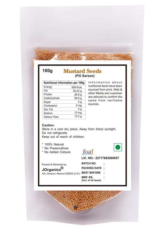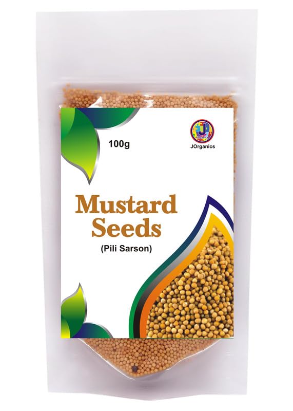 JOrganics Yellow Mustard Naturally Processed Farm Picked Fresh Seeds Peeli Sarson for Pickles & Cooking | 100% Raw Mustard Seeds | Pack of 1 | 100 Grams