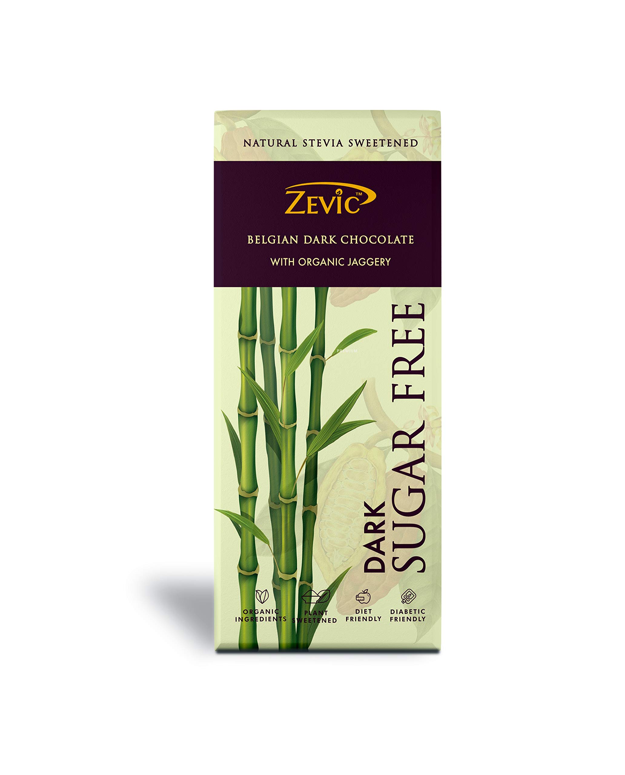 HomeGrocerySweetsChocolatesZEVIC Sugar Free Dark Chocolate with Organic Jaggery | Belgian Dark Chocolate Bar | Sweetened with Jaggery | Rich in Nutrients | Vegan Healthy Chocolate 40g - (Pack of 1)