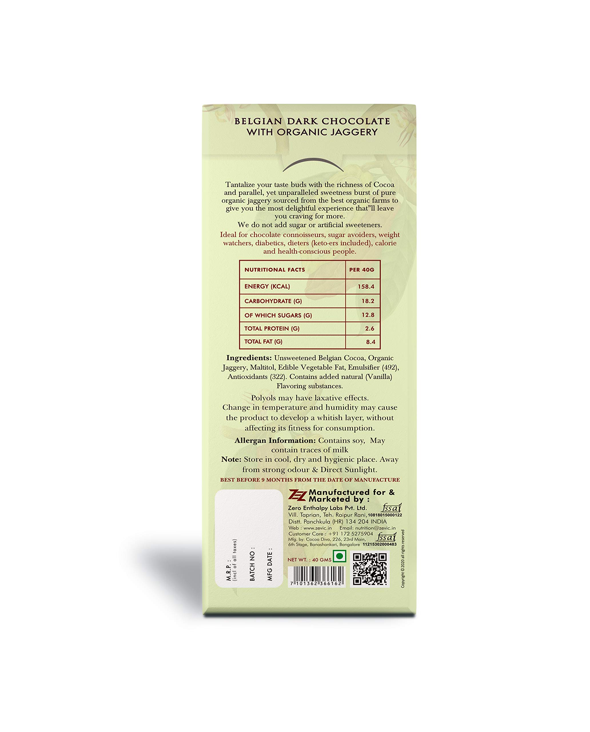 ZEVIC Sugar Free Dark Chocolate with Organic Jaggery | Belgian Dark Chocolate Bar | Sweetened with Jaggery | Rich in Nutrients | Vegan Healthy Chocolate 40g - (Pack of 1)