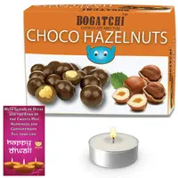 BOGATCHI Complete Diwali Gift Hamper for Friends Chocolate Coated Hazelnut 100g + Free Diwali Greeting Card + Free Tea Light