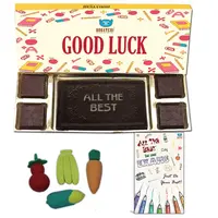 BOGATCHI Good Luck Chocolate Gift Box Exam Wishes Dark Chocolate Bar + 4 pcs + Free Best of Luck Exams Card + Fruit Erasers