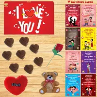 BOGATCHI Valentines Day Chocolate Gift Complete Set 8 Chocolate Hearts + Free All Days Cards + Fur Heart + Teddy + Rose Celebrate Valentines Week