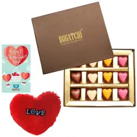 Bogatchi Colorful Hearts Chocolate (White (Pink (Milk and Mango) 12 Pcs) Lovely Red Heart Soft Toy & Greeting Card
