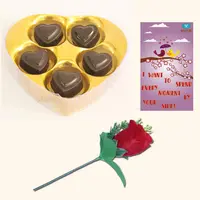 BOGATCHI Chocolates Valentine's Day Gift for Wife 5 Choco Heart Box + Free V-Day Card + Free Rose