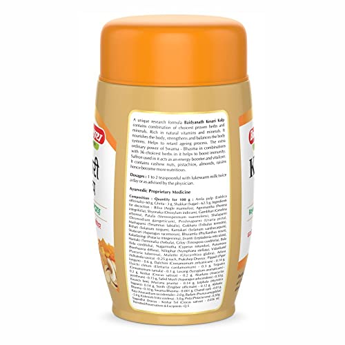 Baidyanath Kesari Kalp Royal Chyawanprash is power-packed with Gold Silver and Saffron along with 44 essential herbs and minerals that help in maintaining youthful energy in the body. Kesari Kalp Chyawanprash helps retain your energy and vigour while givi