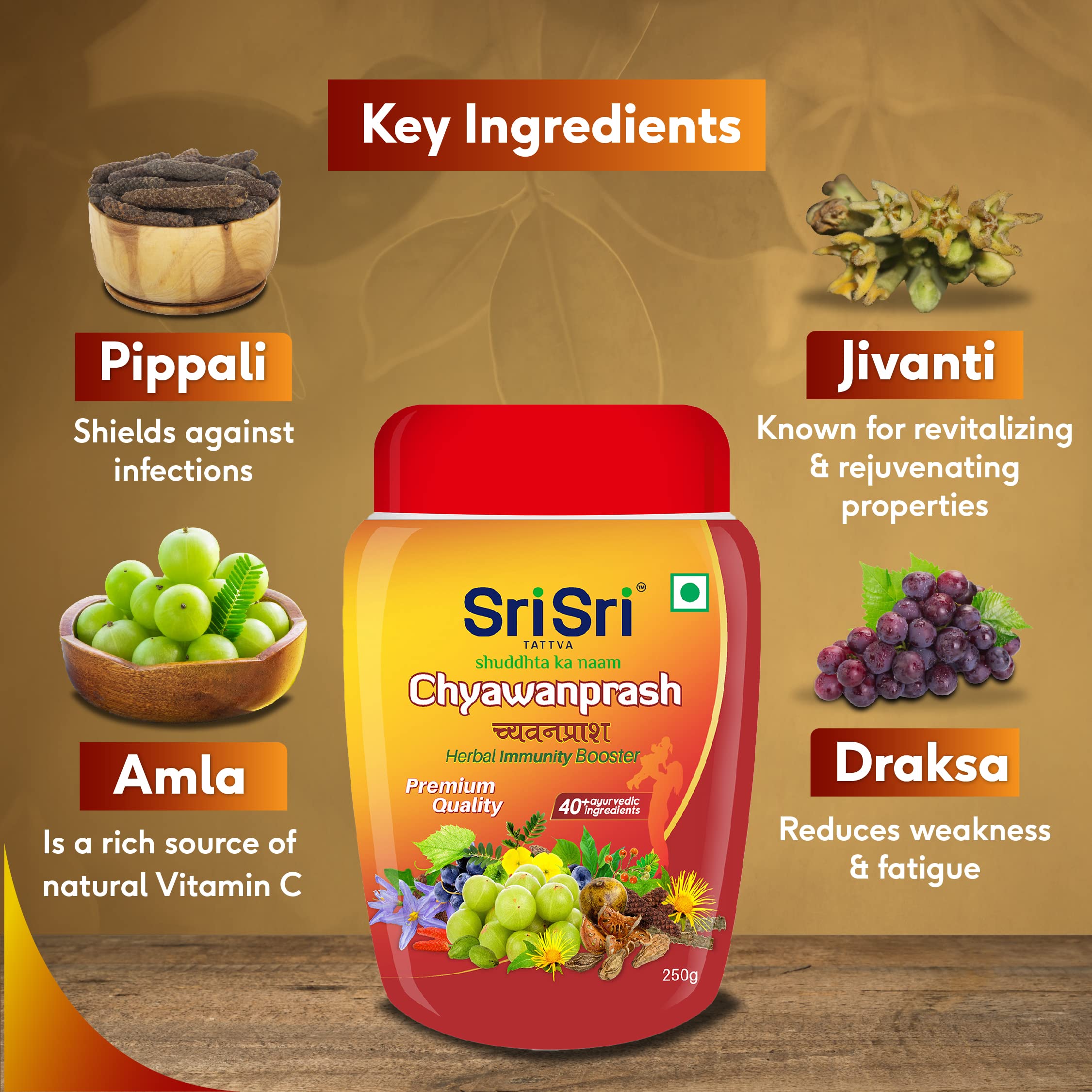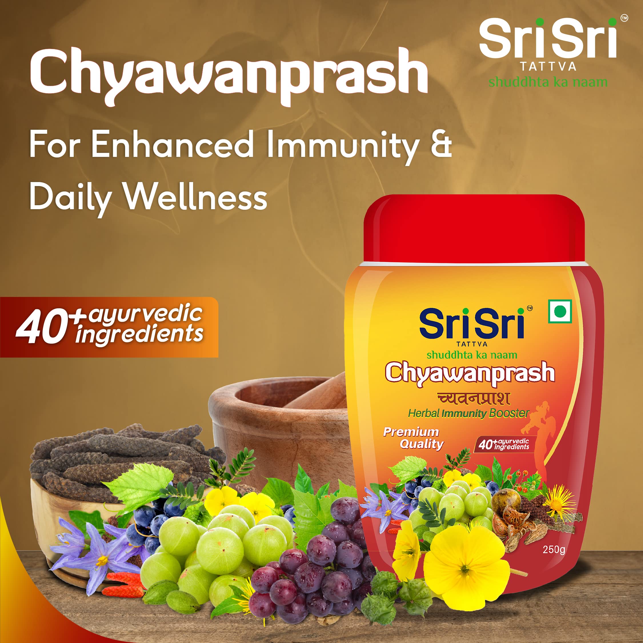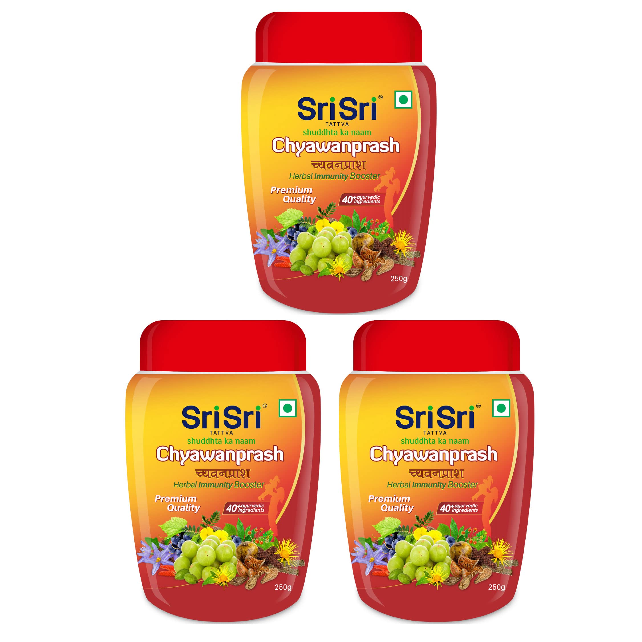 Sri Sri Tattva Chyawanprash - Herbal Immunity Booster with 40+ Ayurvedic Ingredients for Better Strength and Stamina - 250g (Pack of 3)