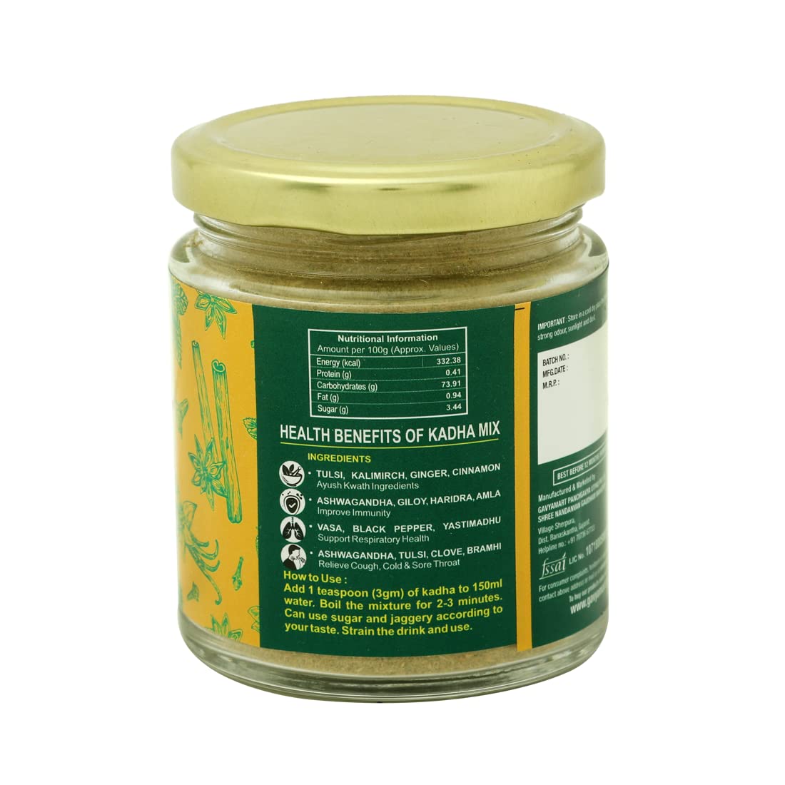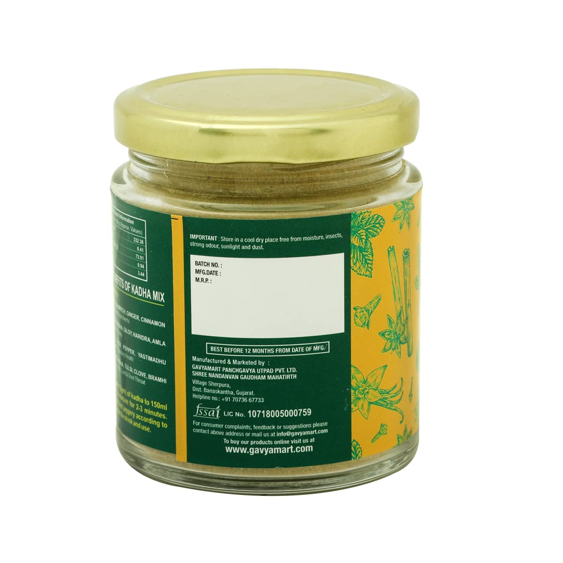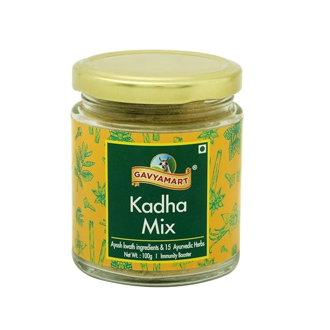Gavyamart kadha Mix is a unique recipe containing ingredients that help in boosting your immunity, support your respiratory health and help relieve cough, cold and sore throat. You can use this kadha to relieve fever. It is prepared from powerful ingredients of Ayush Kwath, along with 6 selected ayurvedic herbs which enhance the quality of kadha mix.