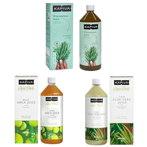 Kapiva Wheatgrass Juice 1 L & Kapiva Wild Amla Juice 1L & Kapiva Thar Aloe Vera Juice (with Pulp) (1L)