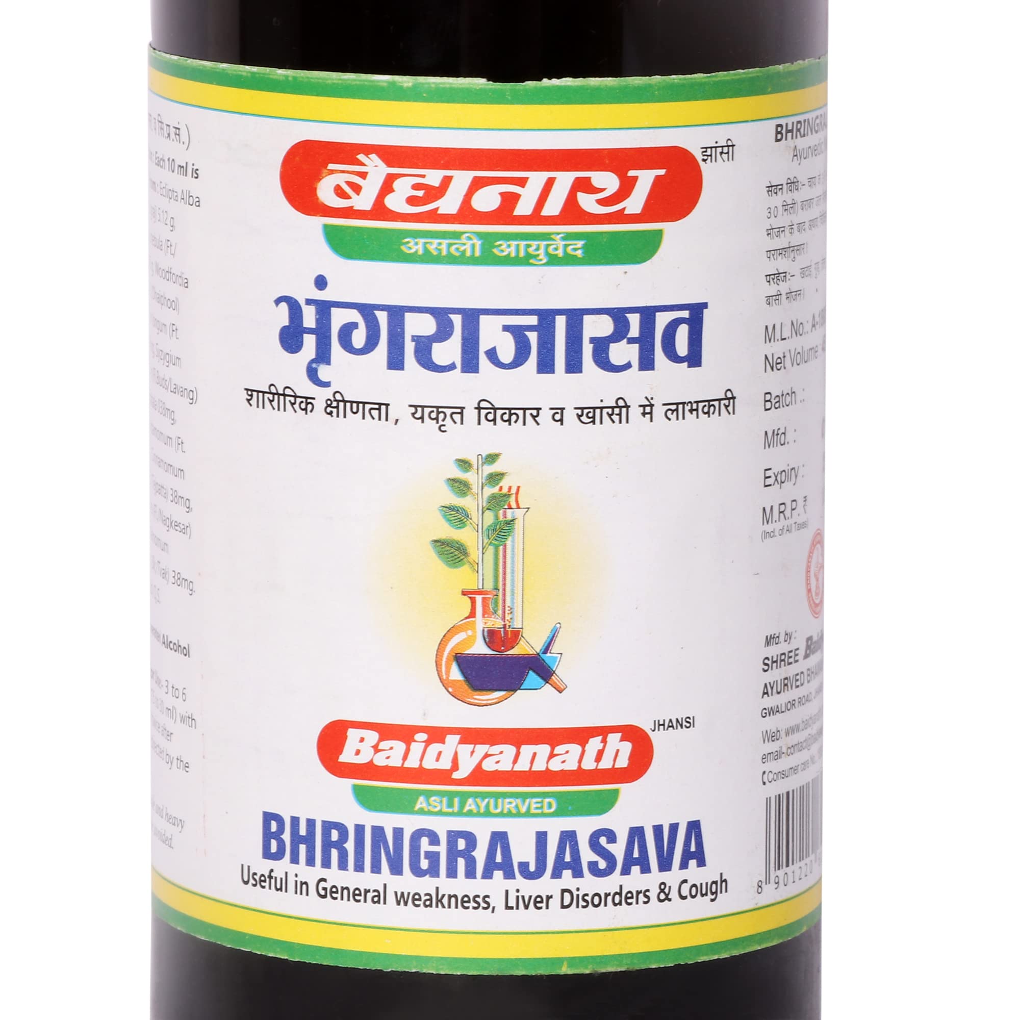 Baidyanath Bhringrajasava Syrup |Made with Natural Ayurvedic Ingredients for Hair Liver Cough Health and Blood Purifer | (450 Ml X 2Pack)
