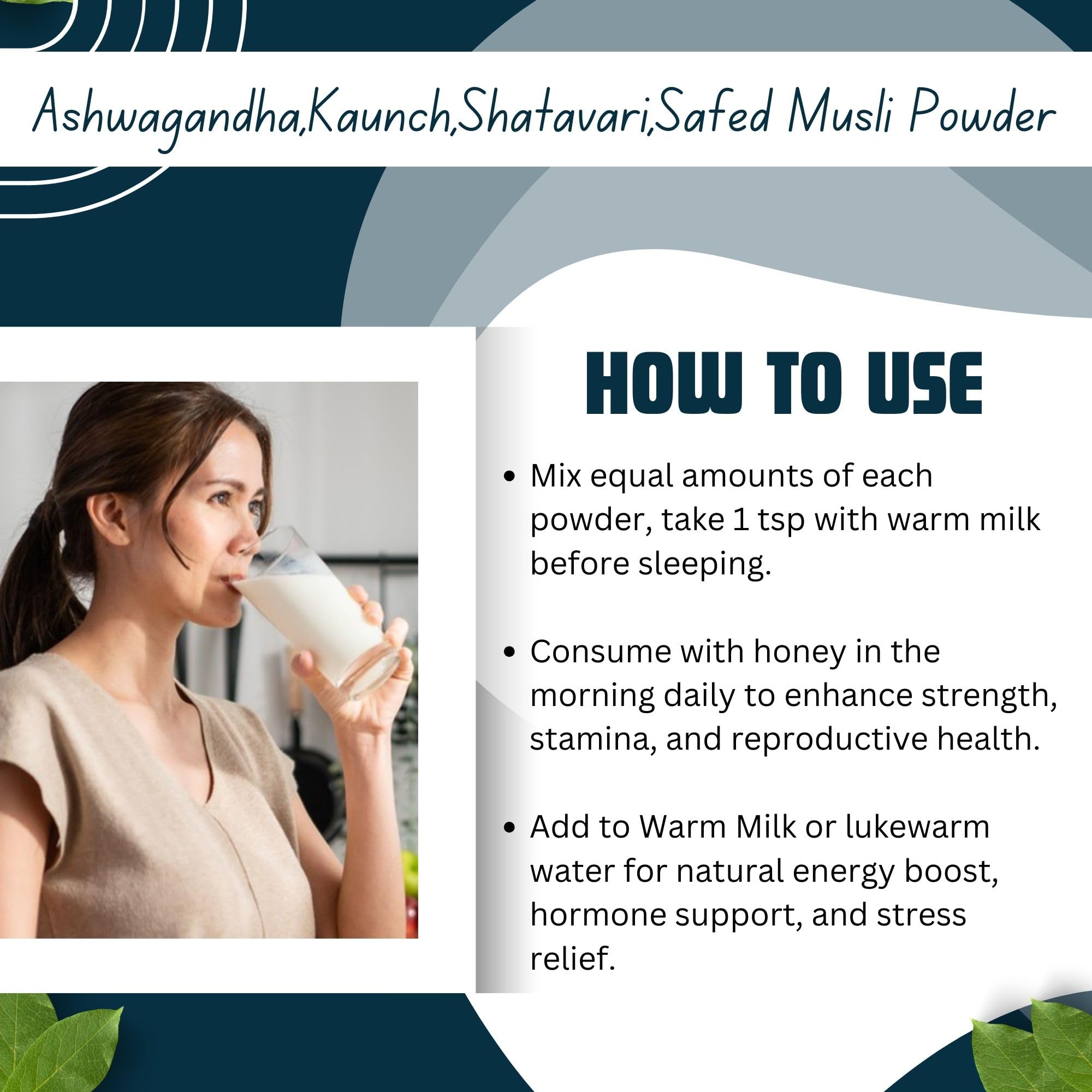 Safed Musli - Ashwagandha - Kaunch - Shatavari Powder, Multi-colored, Powder 800 gram