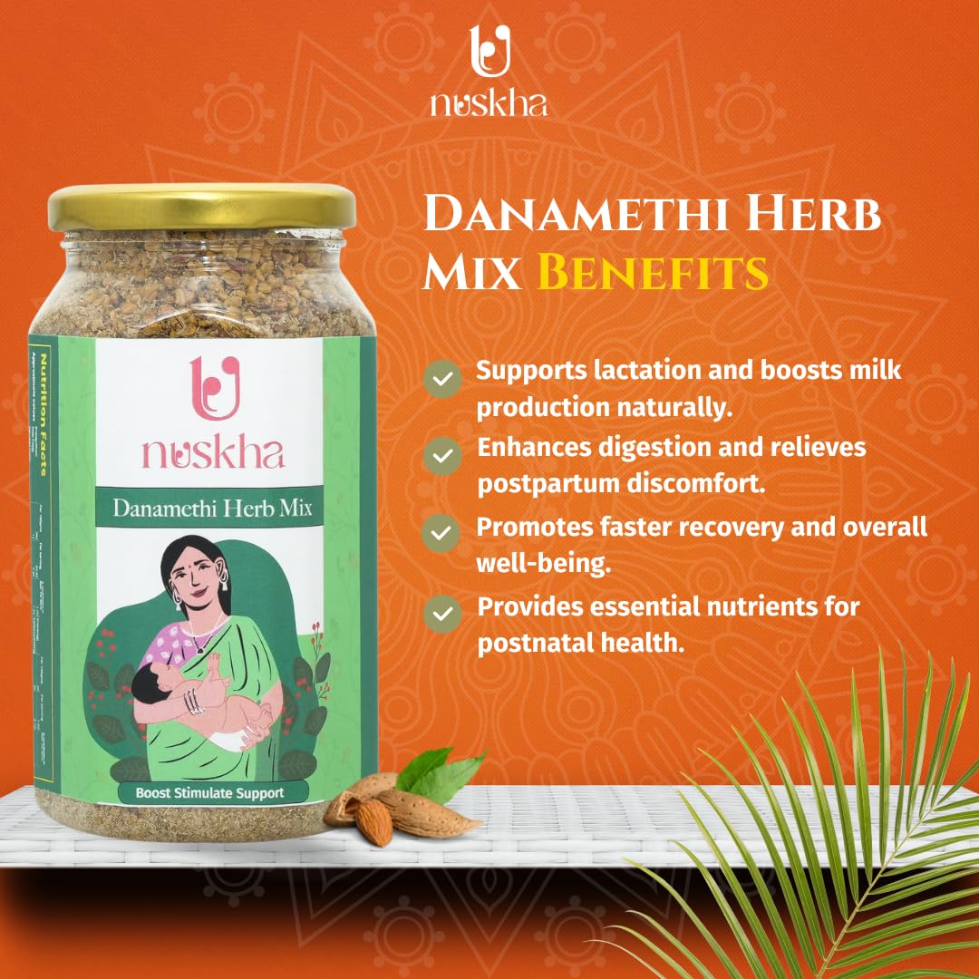 NUSKHA Dana Methi Herbmix| Post Pregnancy || Highly Aromatic | No Additives | No preservatives | No artificial | 100% pure and natural | Fresh & Dried | Indian | 250 Gms