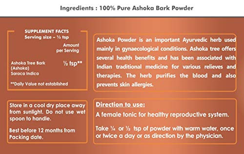 Ashoka Powder is an important Ayurvedic herb used mainly in gynaecological conditions. Ashoka tree offers several health benefits and has been associated with Indian traditional medicine for various relieves and therapies. The herb purifies the blood and also prevents skin allergies.