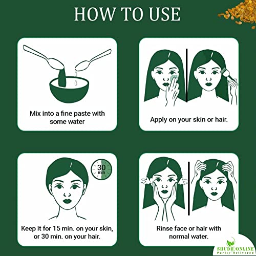 Shudh Online Methi or Fenugreek powder for hair and skin is 100% certified organic powder. Fenugreek seeds are also known as methi in Indian Homes and are a great source for hair nourishment. Hair nutrifies from deep within to the health kicks out the dandruff and dryness adapt the smoothness and lustrous shine. Fenugreek extract powder works within the system to eliminate all bad particles from the body. It is also known as methi seeds fenugreek seeds methi dana methidana fenugreek seed powder menthi powder fenu fiber fungreek meethi seeds Kasoori methi Kaaindha vendhaya ilaigal Menthiyam Vendhayam Methi ke dane Menthulu Mathi Maithi. Shudh Online products are selectively sourced with great emphasis on purity and authenticity and are 100% natural ayurvedic products. We don't add any or additives in the product and using our product will get you closure to nature.