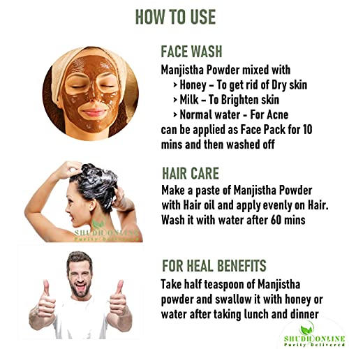 Shudh Online Manjistha Powder Majith Organic Root Powder (100 Grams) Indian Madder (Eating Skin whitening Face Hair) Manjishtha Manjishta Manjishta Manjista