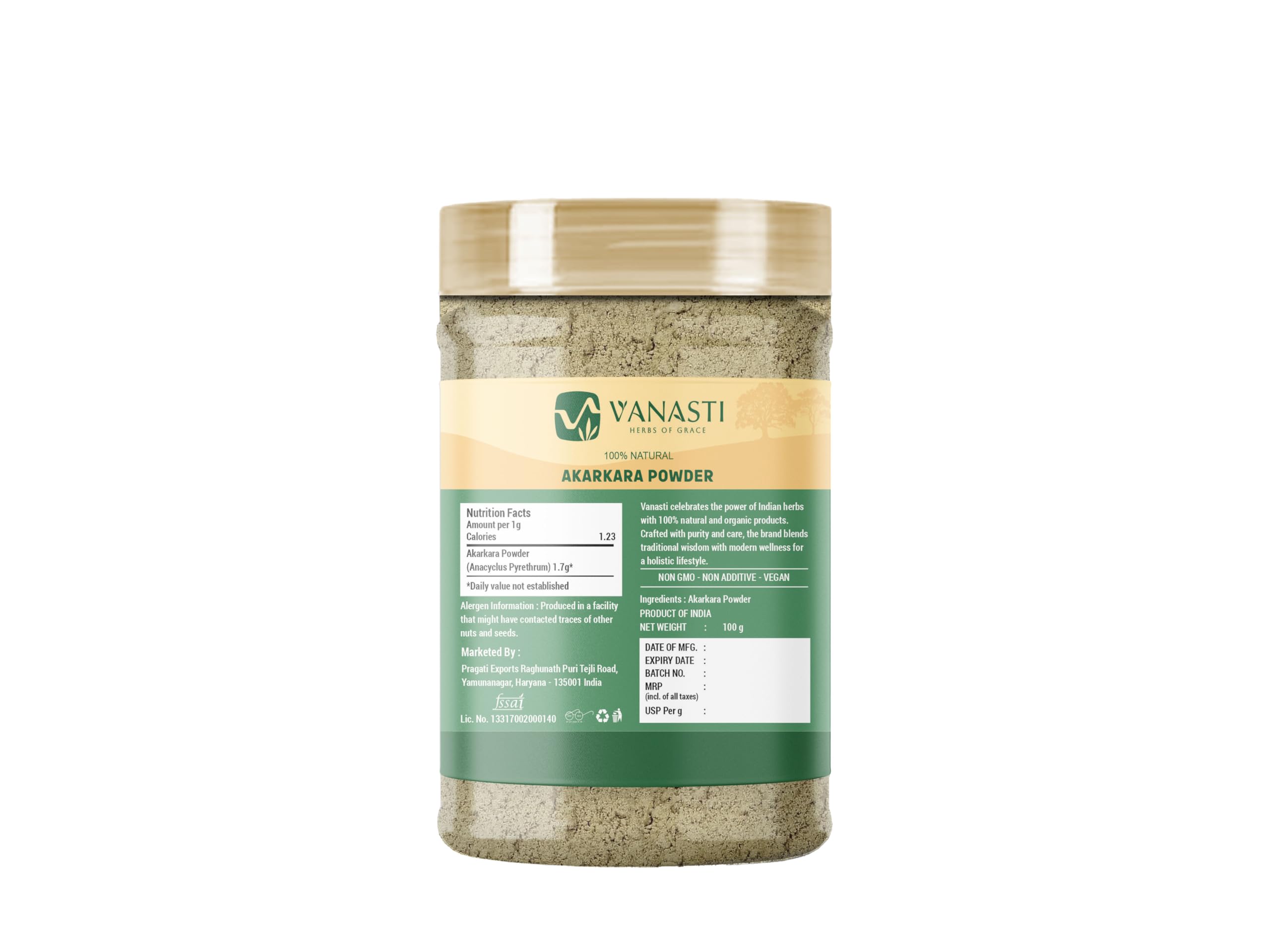 VANASTI Akarkara Powder | Anacyclus Pyrethrum | Pellitory Root Powder | 100 gram