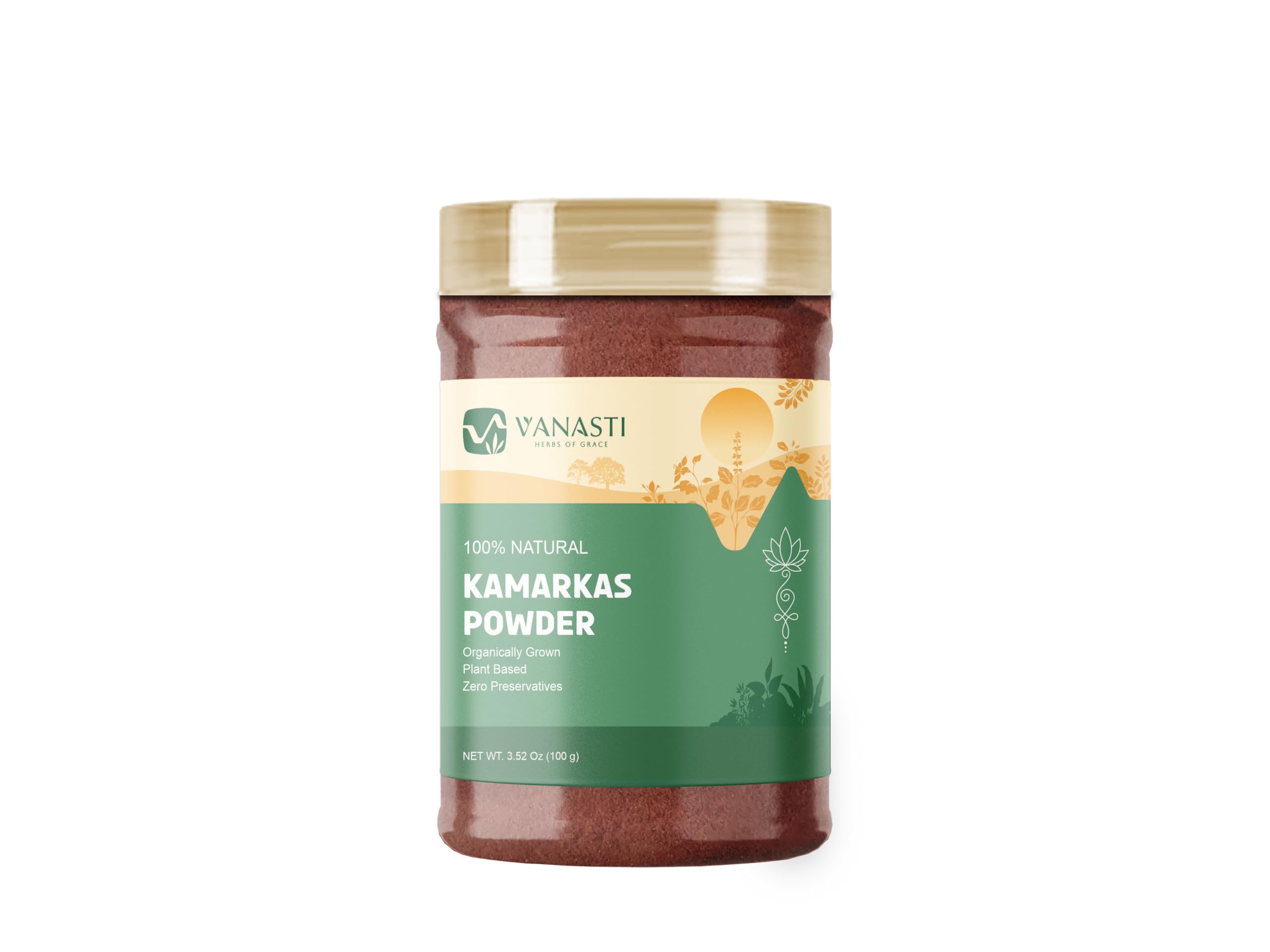 Kamarkas Powder is made from the dried resin of the Butea monosperma tree, also called Gond Chuniya.It has a fine texture and deep red color, with a mild, earthy aroma.This powder is commonly used in dry herbal mixes and special culinary blends.It provides dietary fiber and trace minerals like calcium and iron.Kamarkas Powder is valued for its natural plant source and unique texture.It blends easily into recipes for its color and subtle flavor.
