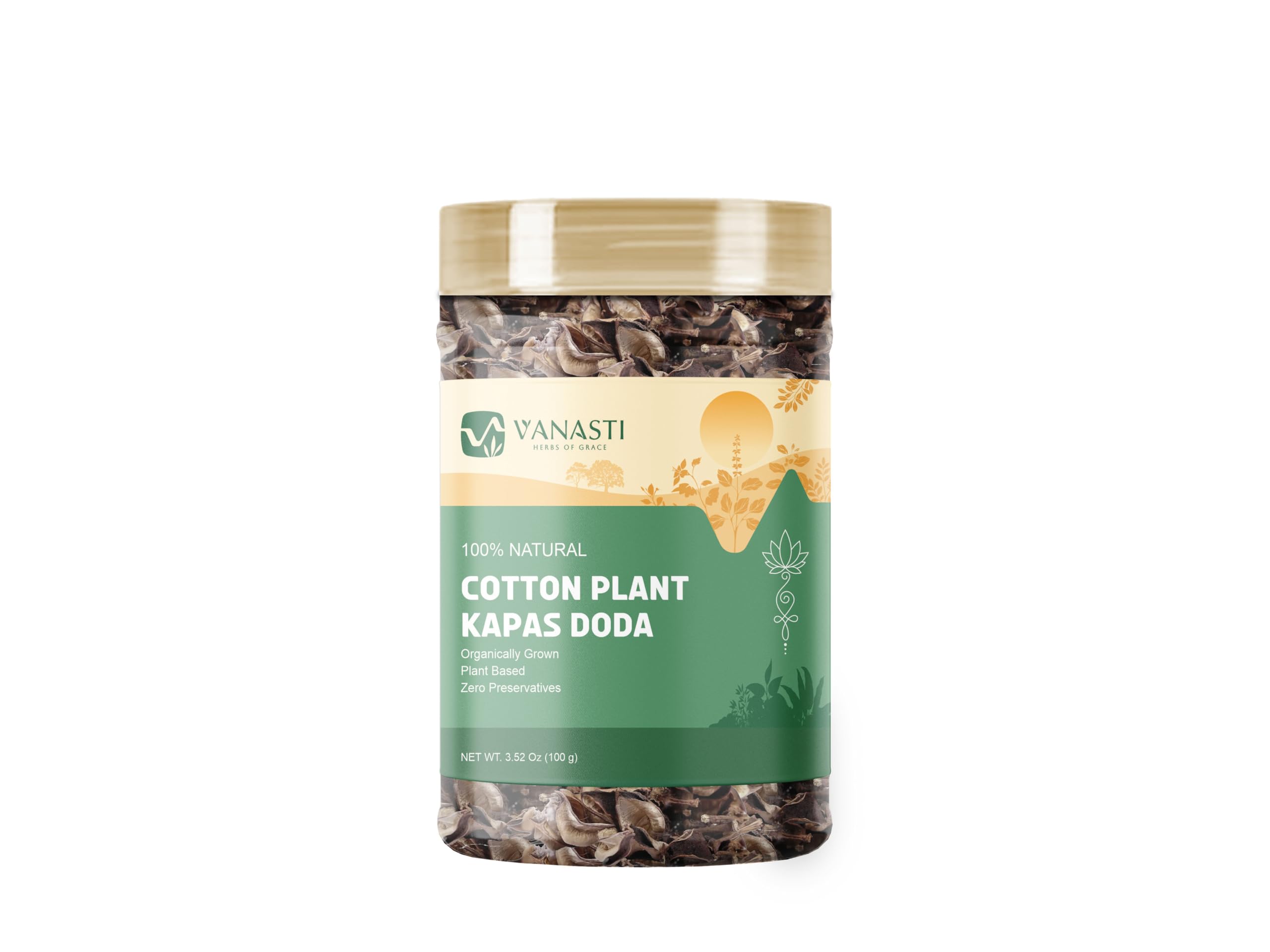 Kapas Doda (Cotton Plant, Gossypium species) is the dried fruit of the cotton plant, recognized for its firm texture and pale brown color. It is a natural source of dietary fiber and contains small amounts of minerals such as calcium and iron. Kapas Doda is sometimes used as an ingredient in herbal blends and culinary preparations. The cotton plant is also widely valued for its soft, breathable fibers used in textiles.