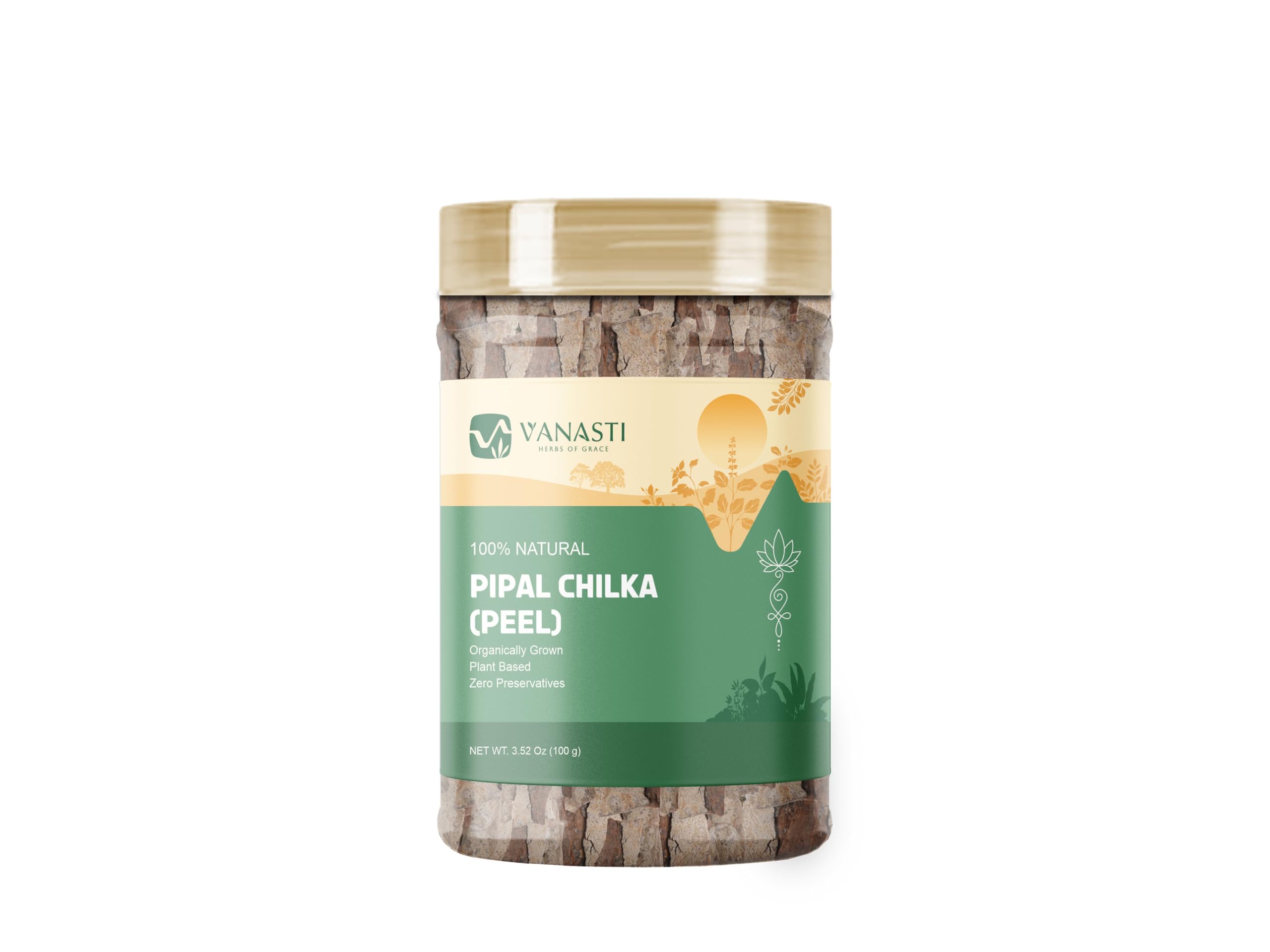 Pipal Chilka is the bark of the Ficus religiosa tree, also known as Peepal. Native to the Indian subcontinent, this tree has smooth, gray bark that peels in flakes and features heart-shaped leaves. It grows well in sunlight and adapts to many soils. The bark contains natural plant compounds, mainly antioxidants, and is sometimes used in traditional mixtures.