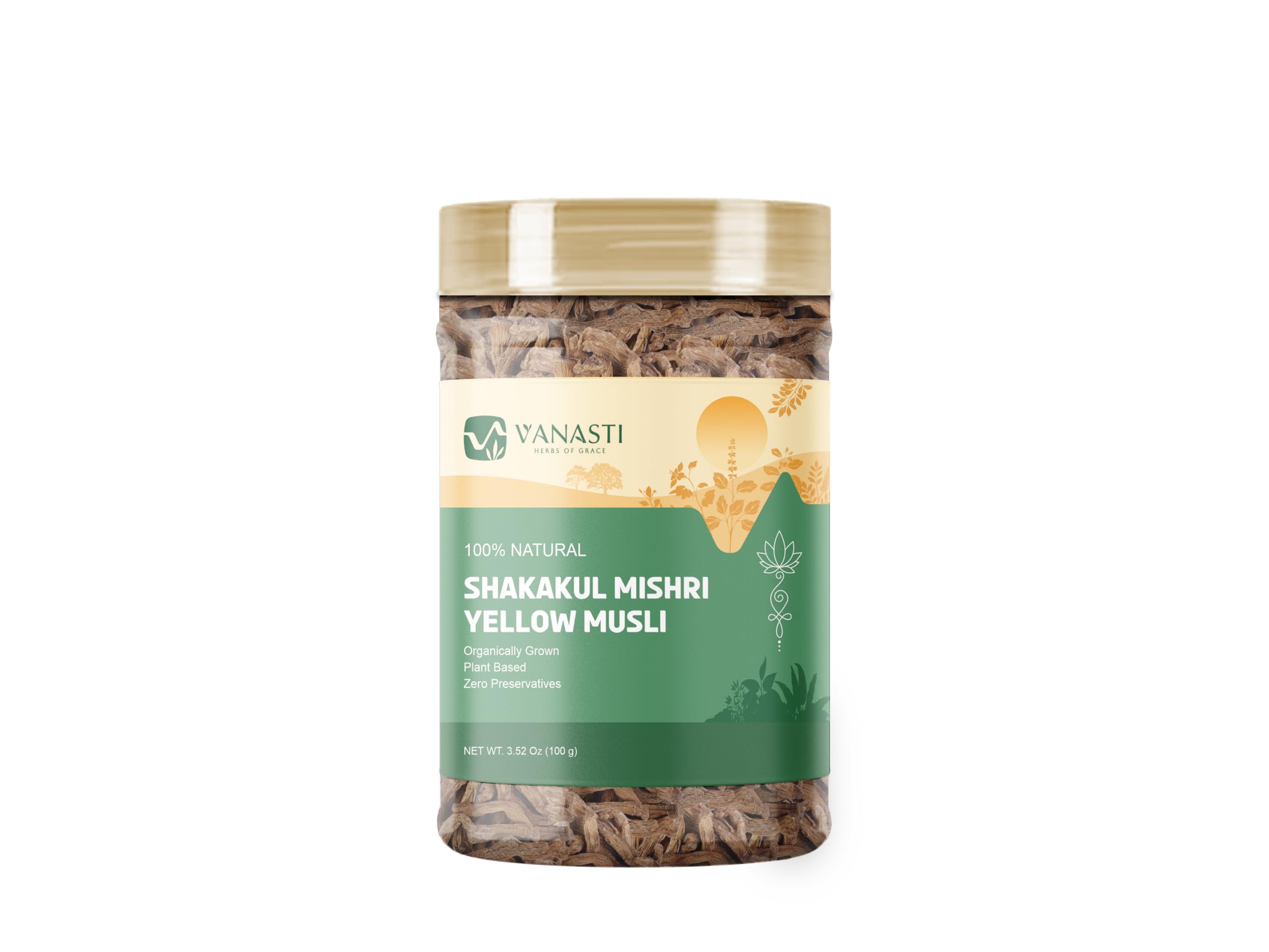 Shakakul Mishri, also known as Shakakul Musli (Trachydium lehmanni), is a root-based herb used in traditional Ayurvedic blends. It contains natural plant compounds such as saponins and antioxidants, along with trace minerals and carbohydrates. The herbs unique botanical profile contributes to its presence in herbal and wellness formulations. Shakakul Mishri is valued for its traditional use and plant-based nutritional content.