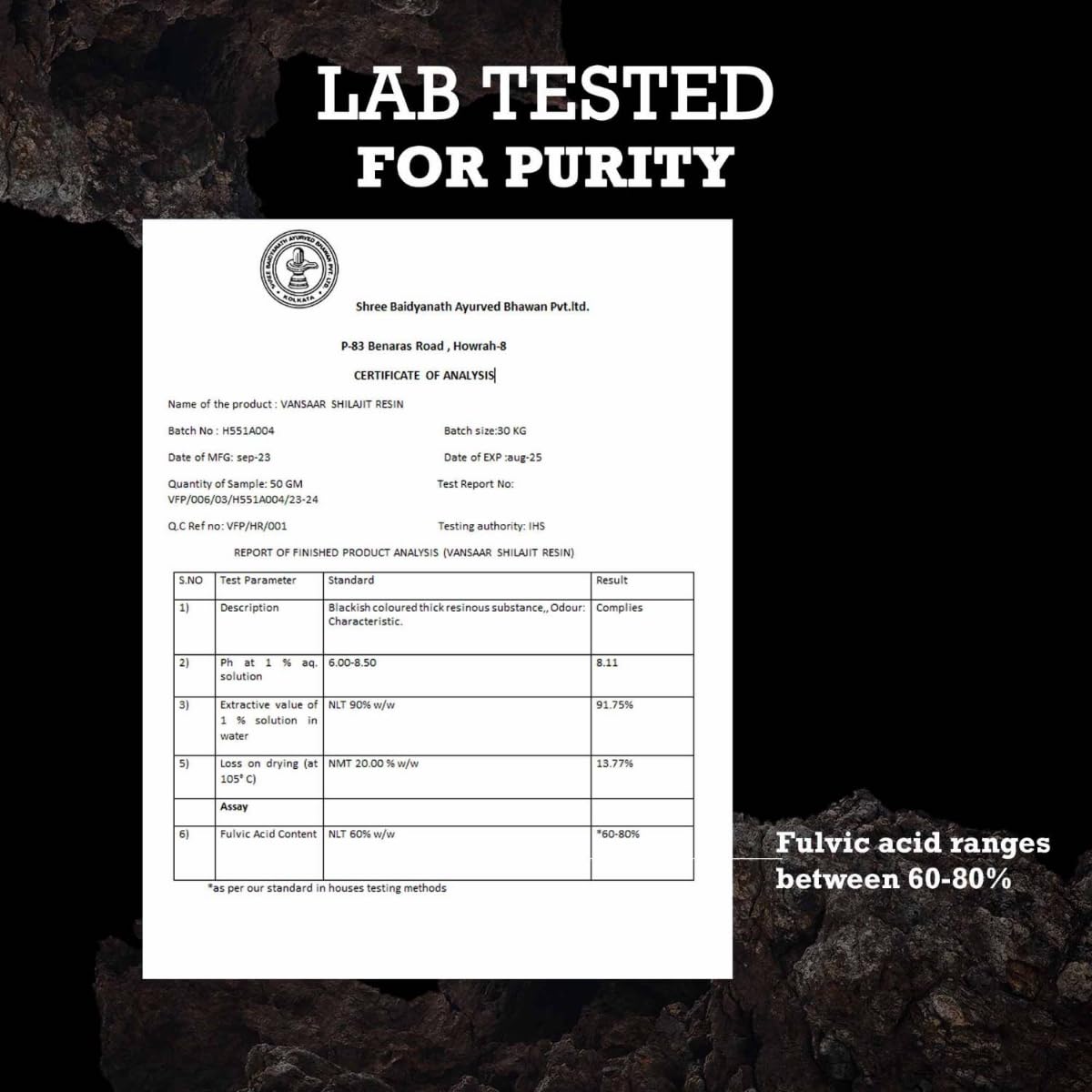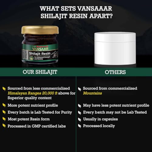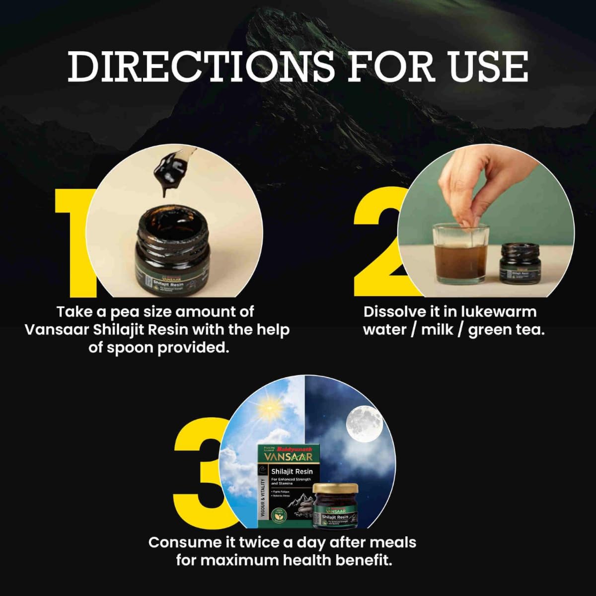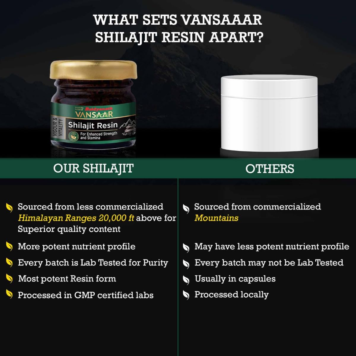 Vansaar brings to you Pure Shilajit which has been used in Baidyanath Medicines for years - now available in its purest and least processed form. It is purified using a traditional process as per ancient ayurvedic scriptures making it completely free from chemicals and impurities. Shilajit acts as an important fatigue fighter thereby promoting all-day round energy for men & women.