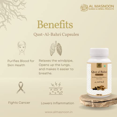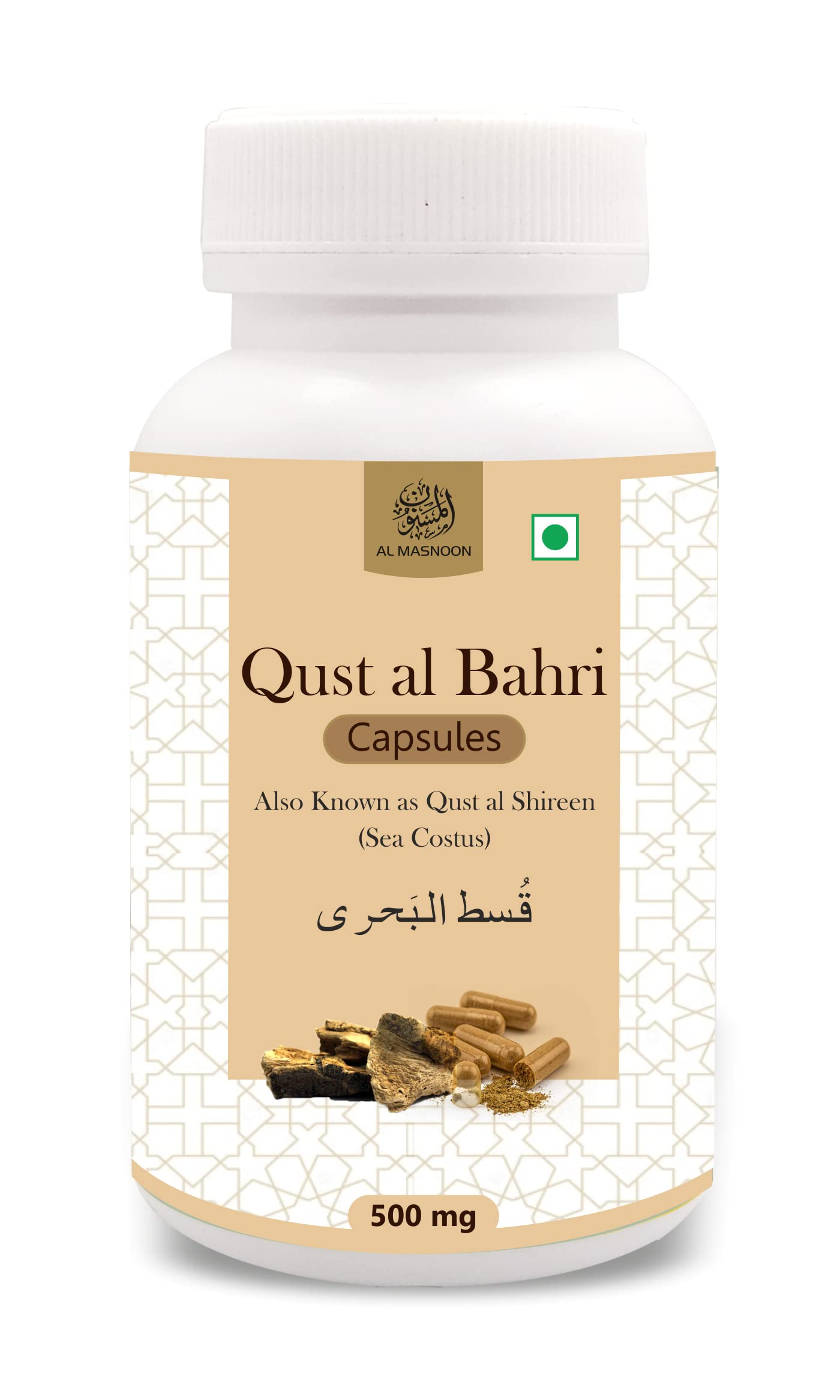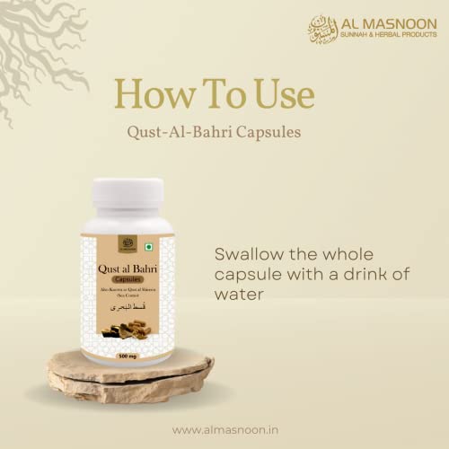 AL MASNOON qust al bahri Caps. 500mg (pack of 60 cap)100% halal & vegetarian Caps. . qust al bahri also known as qust al sheerin & sea costus .
