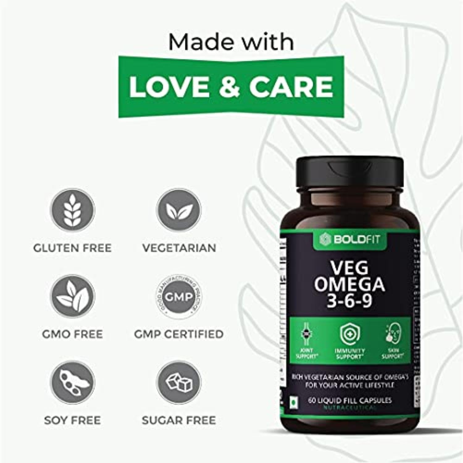 Veg Omega 369 Capsules are purely vegan capsules which is made up of flaxseed oil Sunflower oil and Borage oil which comes from refined Olive Oil. Omega 369 capsule is favorable and beneficial veg omega 3 supplement for Skin support Immunity support and joint Support. These vegan omega 3 Capsules for men & women contain rich vegetarian source of Omega's for your active lifestyles.