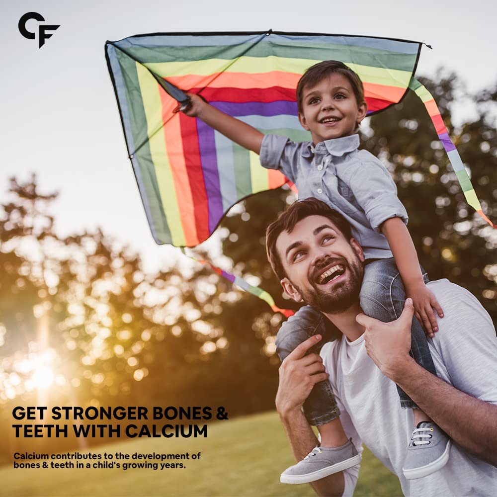 STRENGTHEN MUSCLE FLEXIBILITY & MOBILITY: Our Calcium and Vitamin D Supplement gummies are designed to support healthy muscular function and improve strength along with normal bone mineralization essential for the healthy development of your child when ta