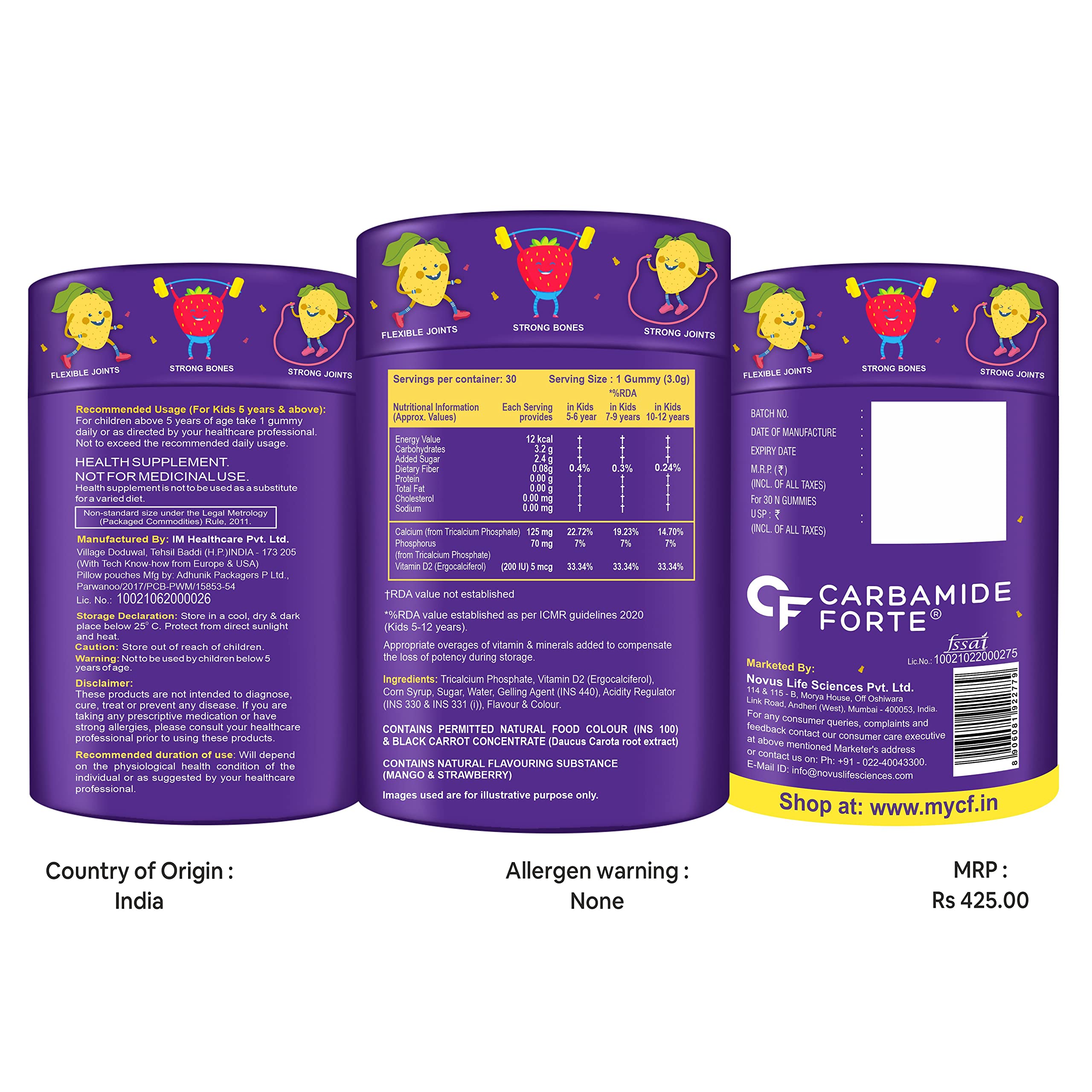 YUMMY MANGO & STRAWBERRY FLAVOUR GUMMIES FOR UNINHIBITED BONE DEVELOPMENT: Our Delicious Mango & Strawberry Flavoured Calcium Gummies for Children make it super easy and fun as compared to calcium and vitamin d3 tablets or calcium for men & women for all