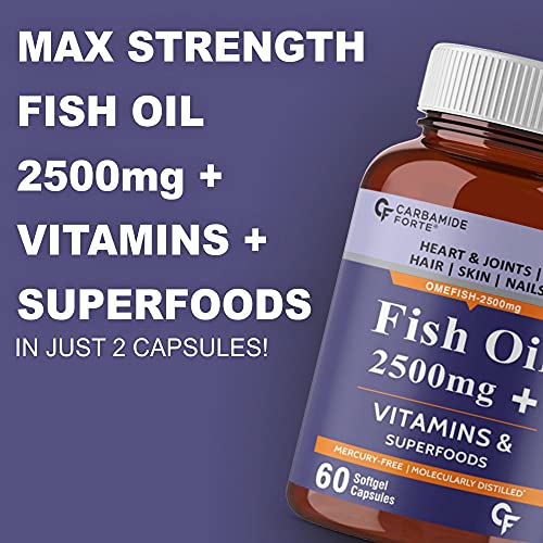 HomeHealth & PersonalDiet & NutritionHealth SupplementsCarbamide Forte Fish Oil 2500mg- 60 Capsules| (Omega 3 1500mg; 900 mg EPA and 600mg DHA Per Serving) Capsule For Men & Women with Biotin, Vitamin D, Vitamin K2-MK7, 480 grams