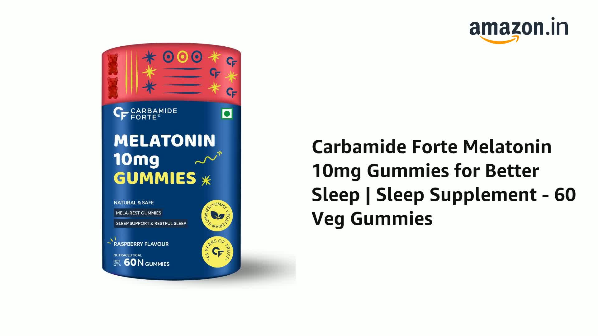 Carbamide Forte Melatonin 10mg Gummies for Better Sleep | Sleep Supplement - 60 Veg Gummies