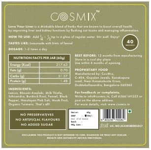 Cosmix Love Your Liver - Milk Thistle Bhumi Amalaki & Turmeric Superfood Blend | Liver Detox Supplement | Support Liver & Kidney Health| No Preservatives Vegan | 60g-40 servings 40 days Pack